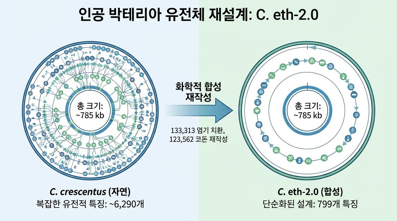 이 과정은 마치 낡고 복잡한 컴퓨터 운영체제(OS)를 버리고, 핵심 기능만 담아 가볍고 빠른 새로운 OS를 코딩하는 것과 같았습니다. 실제로 기존 유전체를 구성하는 80만 개가 넘는 DNA 문자 중 6분의 1 이상이 완전히 새로운 문자로 교체되었습니다. 이는 생명의 근본적인 코드를 재작성하는, 그야말로 혁신적인 작업이었습니다.