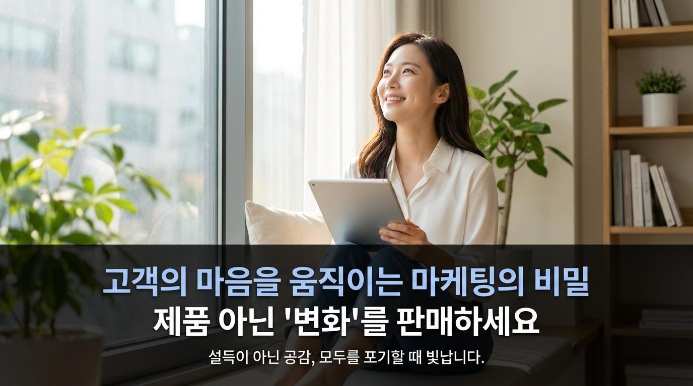 많은 분들이 마케팅을 고객을 설득하여 지갑을 열게 만드는 기술로 오해하시곤 합니다. 그러나 진정한 마케팅은 고객을 강요하거나 설득하는 것이 아니라, 고객이 간절히 바라는 '변화'를 이끌어내는 일입니다. 고객은 단순히 제품의 뛰어난 기능에 매료되어 구매를 결정하는 것이 아닙니다. 그 제품을 사용함으로써 경험하게 될 자신의 변화된 모습을 상상하고, 그 기대감을 구매하는 것입니다.